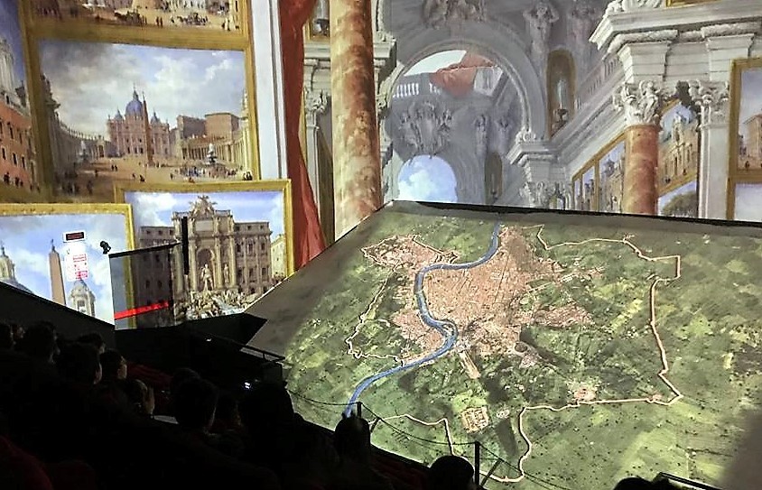 Modello con le altimetrie in scala su cui viene proiettata la storia della città di Roma per il cinema museo Welcome to Rome